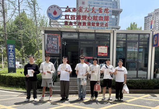 4月18日,老虎机 6名学生在造血干细胞捐献者余文鑫的带领下自愿前往江西省人民医院参与无偿献血并加入中华骨髓库,以实际行动诠释了VR青年的社会担当。