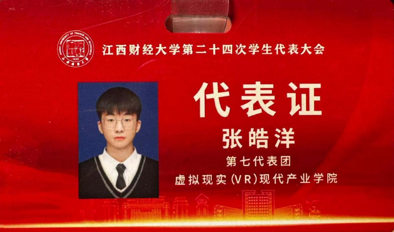 张皓洋,男,中共预备党员,虚拟现实技术2023级学生。2024-2025学年加权成绩92.76,位列专业排名第一。先后担任校艺术团声歌队成员、校数学社学术部部长、院素质拓展部负责人、院文艺部声歌队队长、虚拟251班下班党员;获优秀学生、优秀团员、优秀团干、优秀团学工作者等10余项荣誉称号;曾获中国国际大学生创新大赛(2025)国家级银奖、虚拟现实创新设计竞赛国家级一等奖、全国数字贸易技能大赛国家级一等奖等共计6项国家级奖项,省校级奖项20余项;获国家奖学金、一等奖学金等5项奖学金;获3项发明专利、3项实用新型专利、6项软件著作权。